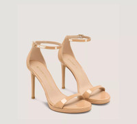 EDITOR'S NOTES The NUDIST PLATFORM delivers a bold update on our iconic NUDIST sandal. It features our innovated NUDIST construction developed for even more comfort than ever before, including: an arched, higher-coverage toe strap; a curved back counter that reveals more of the foot; and a modernized round toe. Crafted by SW artisans in Spain, this platform sandal is set on a lightweight 100-mm stiletto heel and finished with a cushioned insole. The result is a red carpet-ready design that is just as sophisticated as it is wearable. PRODUCT DETAILS MEASUREMENTS Heel Height: 3.9", 100 mm Platform Height: 0.6", 15 mm All measurements are made on a size 6 shoe. There may be slight measurement variations based on size. FEATURES Sandal Stiletto heel Round toe Platform Signature keyhole detail Cushioned insole Adjustable ankle strap Crafted by SW artisans in Spain A Stuart Weitzman icon Part of the iconic NUDIST Collection MATERIALS Patent leather Leather insole Leather outsole MADE IN Spain