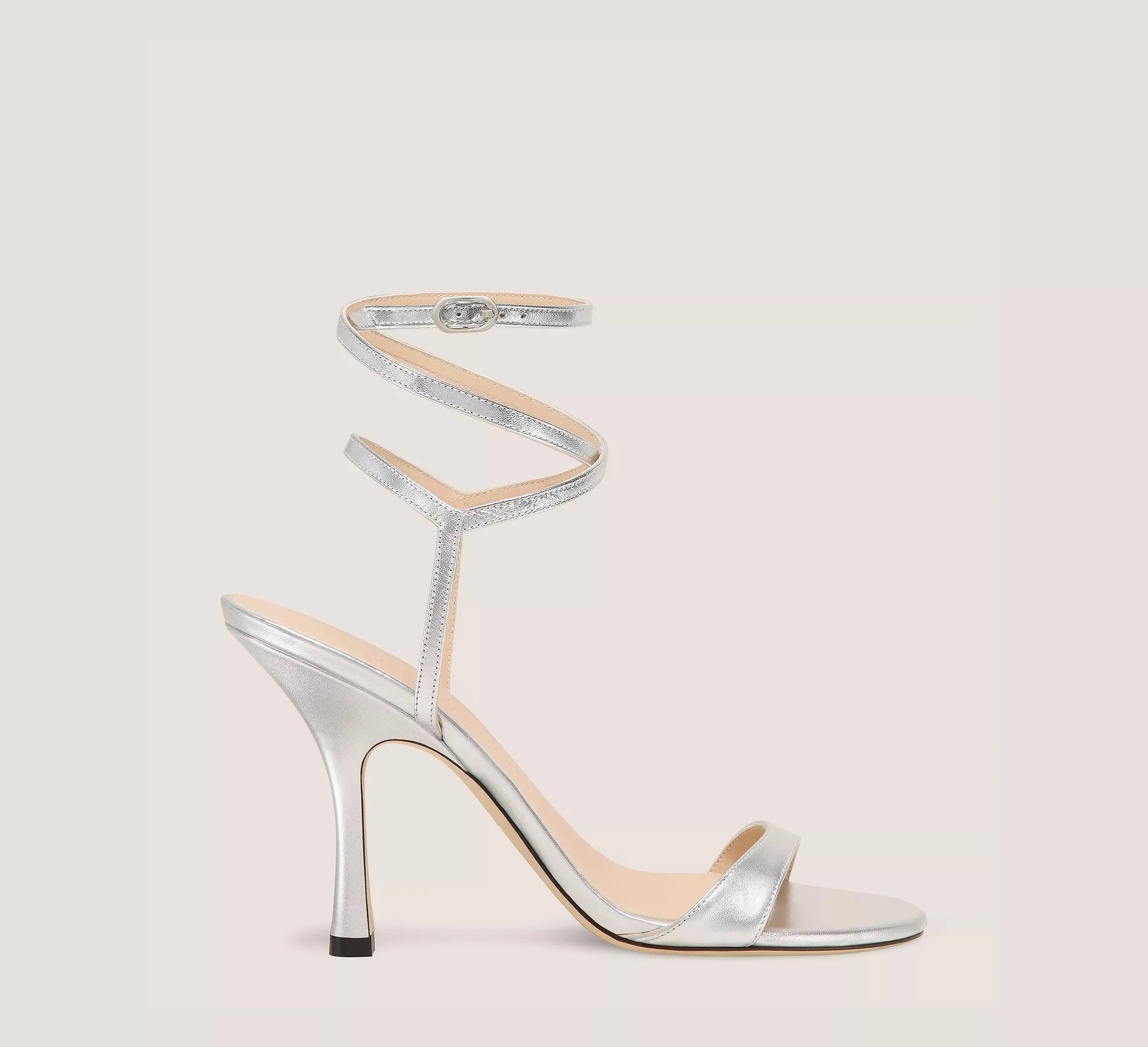 EDITOR'S NOTES The NUDIST WRAP 100 reimagines our iconic red-carpet sandal design with a sophisticated twist. It is distinguished by a sleek wraparound ankle strap and exposed back counter — a detail that gives it an even more naked look. Crafted by SW artisans in Spain, it is finished with a higher-coverage toe strap, a modernized round toe and a 100-mm sculptural stiletto heel that does not sacrifice comfort. PRODUCT DETAILS MEASUREMENTS Heel Height: 3.9", 100 mm All measurements are made on a size 6 shoe. There may be slight measurement variations based on size. FEATURES Sandal Sculptural heel Round toe Wraparound ankle straps Adjustable ankle strap Cushioned insole Adjustable ankle strap Crafted by SW artisans in Spain A Stuart Weitzman icon Part of the iconic NUDIST Collection MATERIALS Liquid Metallic Leather Leather insole Leather outsole MADE IN Spain