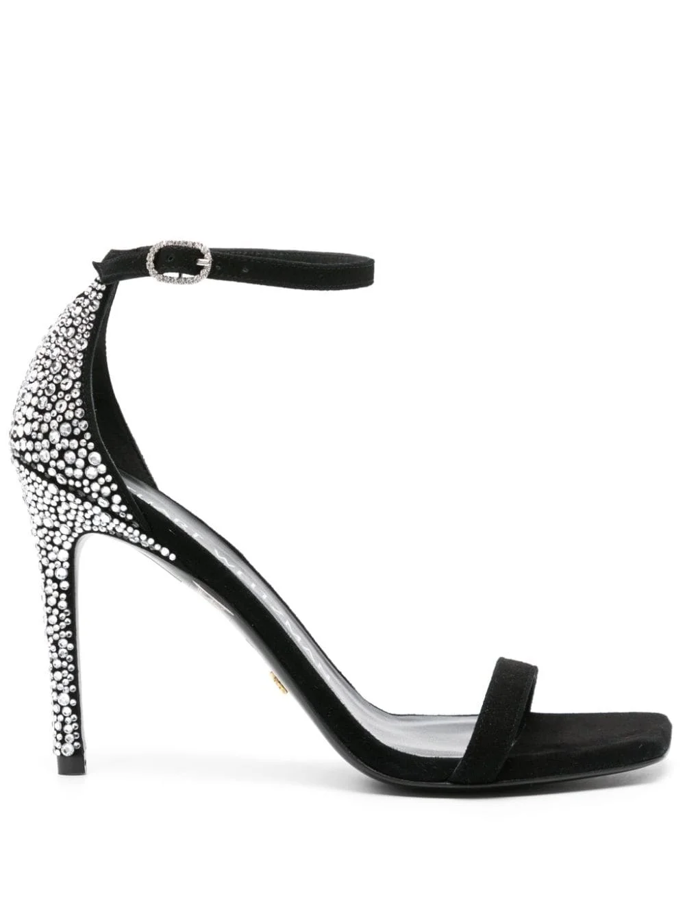 Nudistcurve Royale 100mm rhinestone-embellished sandals Highlights - Black - Calf suede - Rhinestone embellishment - Square open toe - Single toe strap - Buckle-fastening ankle strap - 100mm stiletto heel - Branded leather insole Imported Composition Suede 100% SIZE & FIT Measurement CIRCUMFERENCE 8.66 in(22 cm) HEEL 3.93 in(10 cm) HEIGHT 2.75 in(7 cm)