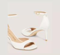 EDITOR'S NOTES The NUDISTIA 75 SANDAL delivers a new-season take on our iconic red-carpet favorite NUDIST sandal. Instead of our signature sleek toe strap, it is designed with a wider, low-cut vamp that elongates the leg and flatters the foot. Crafted by SW artisans in Spain, it features a modern square toe and a keyhole detail on the back counter. A 75-mm stiletto heel further elevates this style without sacrificing comfort. PRODUCT DETAILS MEASUREMENTS Heel Height: 3", 75 mm All measurements are made on a size 6 shoe. There may be slight measurement variations based on size. FEATURES Sandal Stiletto heel Rounded square-toe Adjustable ankle strap High coverage vamp Part of the NUDIST Collection MATERIALS Satin Leather insole Leather outsole MADE IN Spain