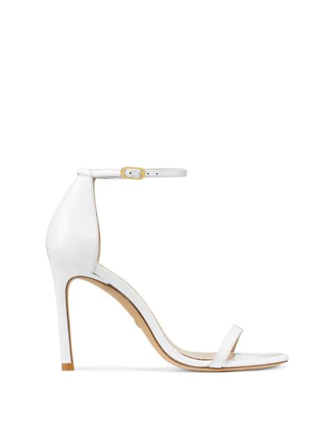 Editor's Notes A Stuart Weitzman signature design, the NUDISTSONG sandal remains a must-have season after season — and it’s easy to see why. Inspired by our iconic NUDIST stiletto, this versatile double-strap design features the same minimalist sensibility on a slightly-lower, 105-mm heel. This high-fashion, high-function look is finished with an sleek ankle strap that can be adjusted for a personalized, flawless fit that works with any look. This look is part of our iconic NUDIST Collection. Product Details MEASUREMENTS Heel Height: 4.1", 105 mm All measurements are made on a size 6 shoe. There may be slight measurement variations based on size. FEATURES Sandal Stiletto heel Round toe Inspired by the iconic NUDIST An SW icon Adjustable ankle strap Part of the NUDIST Collection MATERIALS Patent leather Leather insole Buffed leather outsole with grooves for added traction MADE IN SPAIN