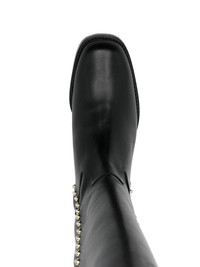 pearl-embellished detail boots jet black calf leather knee-high faux-pearl detailing round toe branded insole low block heel Imported Composition Leather 100% SIZE & FIT Measurement CIRCUMFERENCE 14.56 in(37 cm) HEEL 1.77 in(4.5 cm) HEIGHT 15.35 in(39 cm) Sole height 0.59 in(1.5 cm)