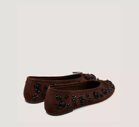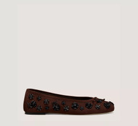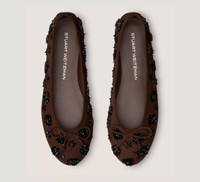EDITOR'S NOTES The PRIMA BOW BALLET is our effortlessly glamorous take on the classic ballet flat. Designed with a flat block heel and detailed with a delicate bow accent, it makes an elegant choice for everyday wear. PRODUCT DETAILS MEASUREMENTS Heel Height: 0.2", 5 mm All measurements are made on a size 6 shoe. There may be slight measurement variations based on size. FEATURES Flat Round toe Ballet flat-inspired design Bow detail MATERIALS Jasmine Embroidered Suede Leather insole Leather outsole MADE IN Spain