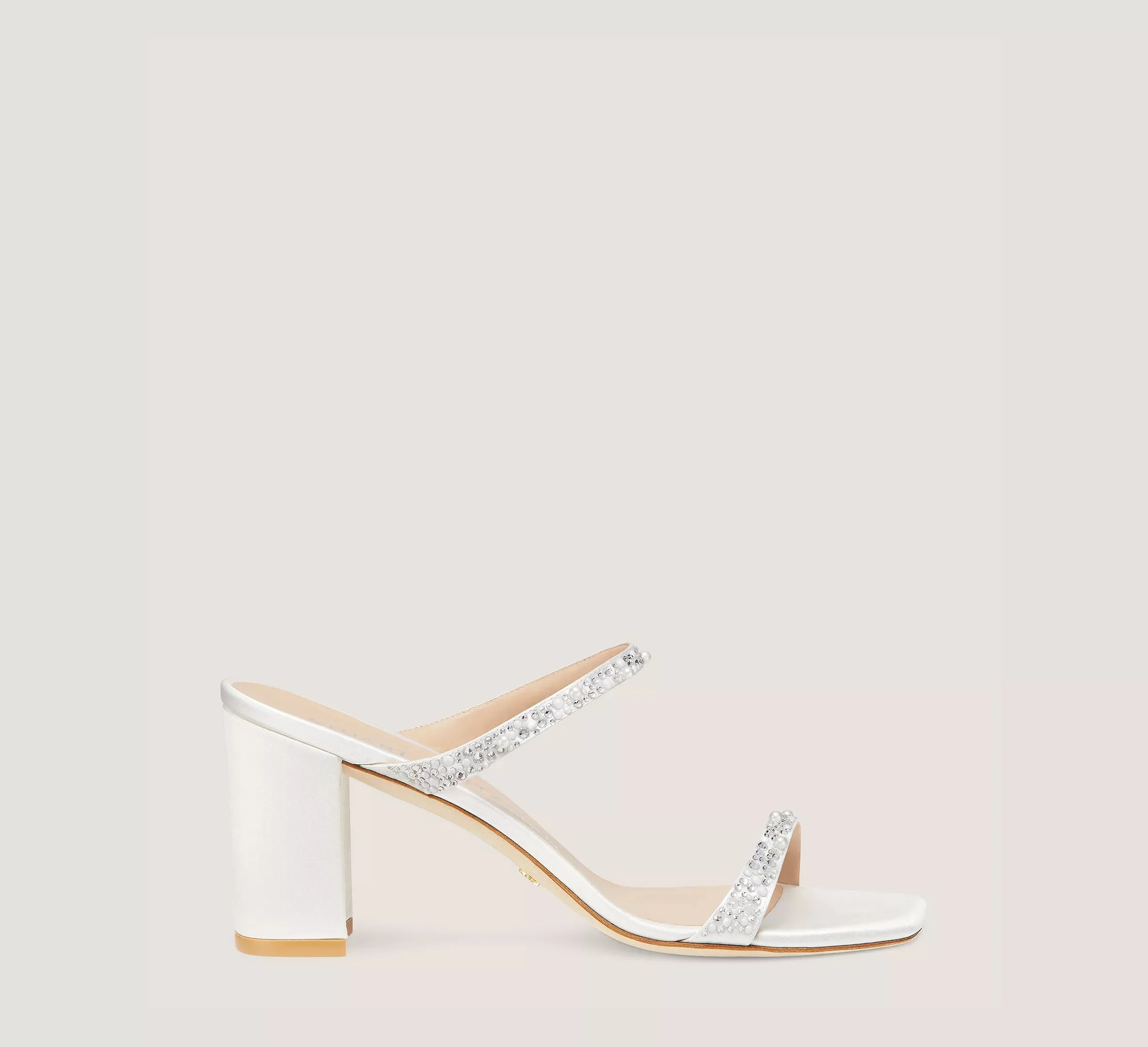 EDITOR'S NOTES The ROYALE PEARL 75 BLOCK SLIDE pairs a timeless, minimalist silhouette with strikingly opulent details: It features approximately 900 crystal and pearl embellishments, each meticulously hand-placed and individually inspected to ensure a flawless end result. Crafted by SW artisans in Spain, it features modern square toe and a wearable, 75-mm block heel that delivers dance-all-night comfort. PRODUCT DETAILS MEASUREMENTS Heel Height: 3", 75 mm All measurements are made on a size 6 shoe. There may be slight measurement variations based on size. FEATURES Slide Block heel Square-toe Slide sandal Hand-placed crystal and pearl embellishments in various sizes MATERIALS Satin Leather insole Leather outsole MADE IN SPAIN