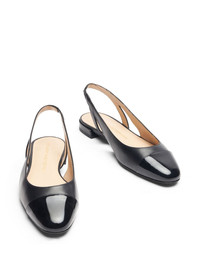 Sleek slingback ballerina shoes Highlights - Black - Calf leather - Smooth grain - Patent finish contrasting toecap - Almond toe - Elasticated slingback strap - Branded leather insole - Contrast lining - Flat sole - Slip-on style Imported Composition Outer: Calf Leather 100% Sole: Calf Leather 100% Lining: Calf Leather 100% SIZE & FIT Measurement HEEL 0.59 in(1.5 cm)