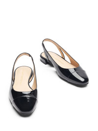 Sleek slingback leather pumps Highlights - Black - Calf leather - Patent finish - Round toe - Elasticated slingback strap - Branded leather insole - Low block heel - Slip-on style Imported Composition Outer: Calf Leather 100% Lining: Calf Leather 100% Sole: Calf Leather 100% SIZE & FIT Measurement HEEL 0.59 in(1.5 cm)