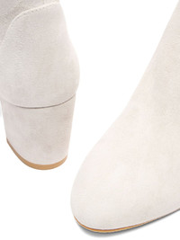 sock-fit block-heel boots Highlights - Off-white - Suede upper - Block heel - Sock-like fit - Pointed toe - Pull-on style Imported Composition Lining: Calf Leather 100% Sole: Calf Leather 100% Outer: Suede 100% SIZE & FIT Measurement HEEL 2.36 in(6 cm)