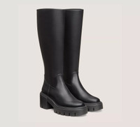 EDITOR'S NOTES It’s the season of the knee-high boot, and our SOHO KNEE-HIGH BOOT delivers our edgy take on the must-have look. Crafted by SW artisans in Spain, it features a distinctively sleek silhouette, which is paired with a bold lug sole. A side zipper provides extra wearability, making it easy to slip on and off. PRODUCT DETAILS MEASUREMENTS Heel Height: 1.6", 40 mm Shaft Height: 15", 38 cm Shaft Circumference: 14.2", 36 cm All measurements are made on a size 6 shoe. There may be slight measurement variations based on size. FEATURES Boot Knee-high Block heel Round toe Side zipper Lug sole MATERIALS Smooth Leather Leather insole Rubber outsole MADE IN Spain