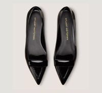 EDITOR'S NOTES The SOVINNIE FLAT draws upon our best-selling pointed-toe VINNIE pump, translating its sculptural sensibility into a polished flat. It features a penny loafer-inspired design— complete with a a higher-coverage vamp — and is finished with a modern, subtly puffy upper detail that recalls a penny slot. PRODUCT DETAILS MEASUREMENTS Heel Height: 0.2", 5 mm All measurements are made on a size 6 shoe. There may be slight measurement variations based on size. FEATURES Flat Pointed Toe Loafer-inspired design Puffed upper accent MATERIALS Patent leather MADE IN Spain