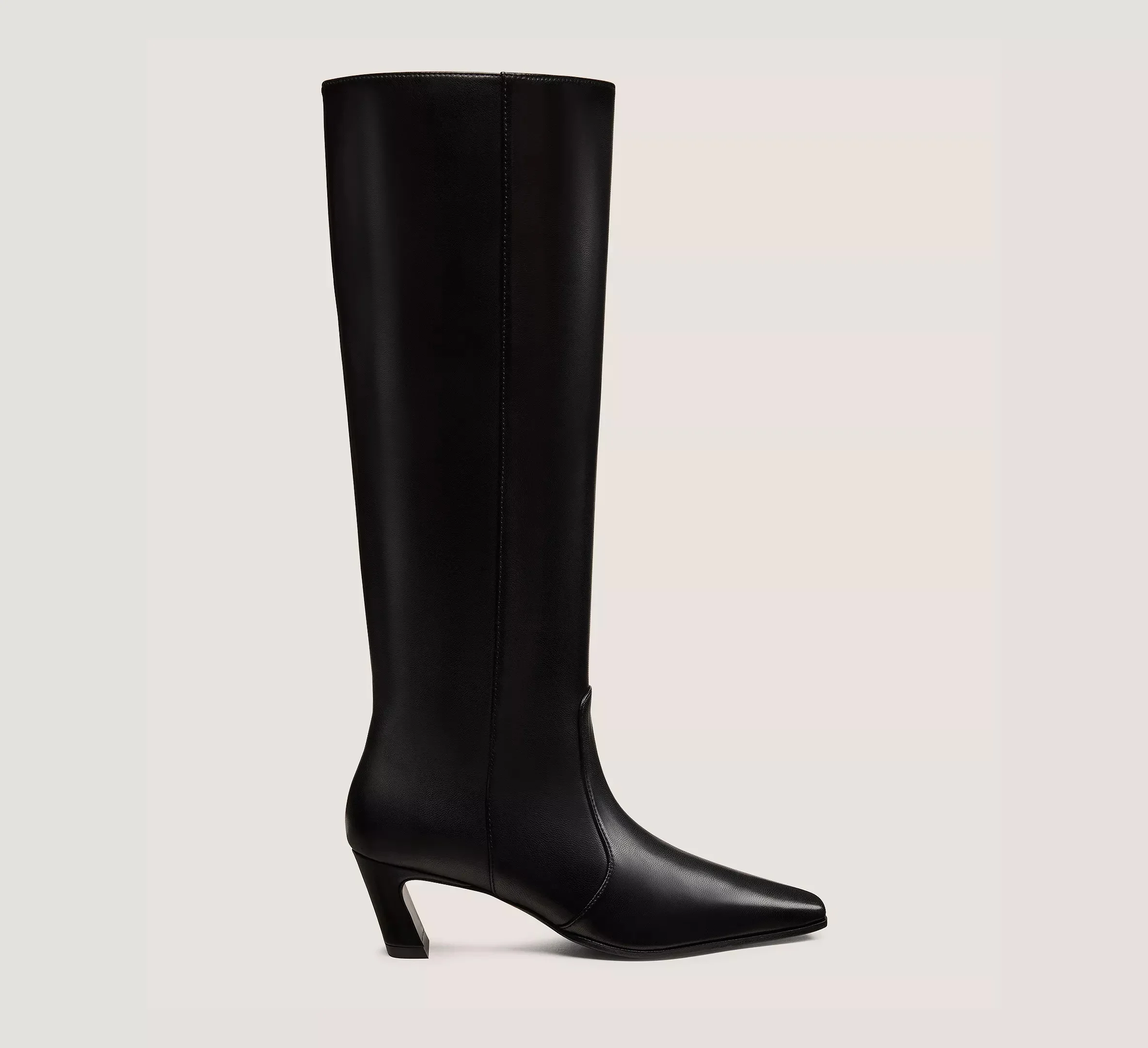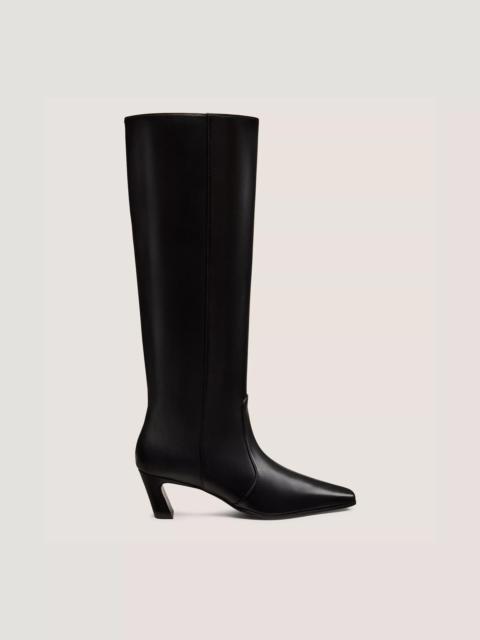 EDITOR'S NOTES The STASSI BOOT 50 reimagines the timeless knee-high boot silhouette with a modern twist. Sleek details, including an angled slim block heel and a structured, streamlined profile, further elevate the look. PRODUCT DETAILS MEASUREMENTS Heel Height: 2", 50 mm Shaft Height: 15.4", 39 cm Shaft Circumference: 14.6", 37 cm All measurements are made on a size 6 shoe. There may be slight measurement variations based on size. FEATURES Boot Knee-high Sculptural heel Pointed toe Structured shaft MATERIALS Nappa Leather Leather insole Leather outsole MADE IN Spain