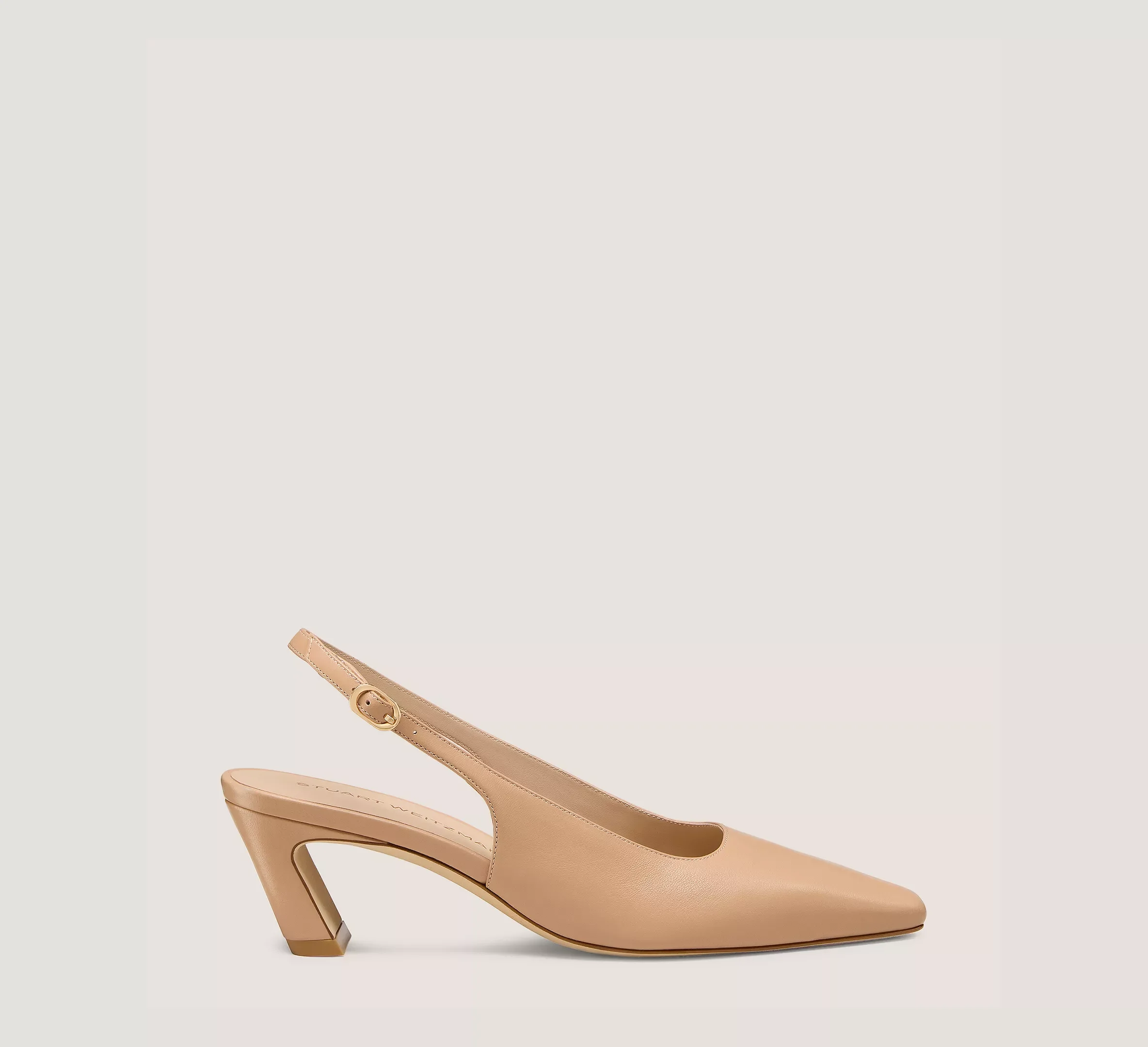 EDITOR'S NOTES The STASSI SLINGBACK 50 delivers our architectural spin on the enduring slingback look. This made-in-Spain design rests on a distinctive 50-mm angled slim block heel, and its squared-off pointed toe further sets it apart. PRODUCT DETAILS MEASUREMENTS Heel Height: 2", 50 mm All measurements are made on a size 6 shoe. There may be slight measurement variations based on size. FEATURES Pump Sculptural Heel Pointed toe Adjustable slingback strap MATERIALS Nappa Leather Leather insole Leather outsole MADE IN Spain