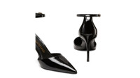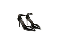 Editor's Notes The STUART 85 STRAP PUMP stays true to our signature minimalist sensibility with its pared-back construction and sleek, sharp lines. Crafted by our artisans in Spain, it offers a modern take on the classic pump with its exposed sides and adjustable ankle strap. Meanwhile, its 85-mm stiletto heel is constructed for a perfect amount of lift without sacrificing comfort. Product Details MEASUREMENTS Heel Height: 3.4", 85 mm All measurements are made on a size 6 shoe. There may be slight measurement variations based on size. FEATURES Pump Stiletto heel Pointed toe Adjustable ankle strap Part of the STUART Collection MATERIALS Patent leather Leather insole Buffed leather outsole + rubber injection tip with metal star MADE IN SPAIN