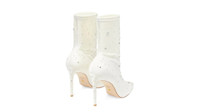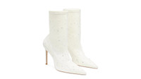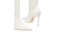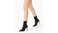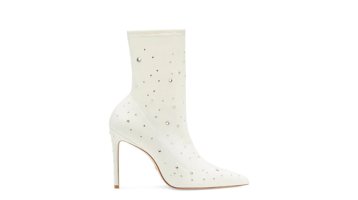 Editor's Notes The STUART 100 COSMIC BOOTIE has major star appeal. Meticulously crafted by our artisans in Spain, this rendition of the classic sock BOOTIE is distinguished by Swarovski crystals arranged in a pattern inspired by zodiac constellations. It is constructed for our signature flawless, comfortable fit, and a sharp pointed toe and 100-mm stiletto heel deliver timeless polish to this already-striking style. Product Details MEASUREMENTS Heel Height: 3.9", 100 mm Shaft Height: 6.3", 16 cm Shaft Circumference: 9.7", 25 cm All measurements are made on a size 6 shoe. There may be slight measurement variations based on size. FEATURES Bootie Ankle Stiletto heel Pointed toe Pull-on Sock bootie Stretch construction Swarovski crystal embellishments Part of the STUART Collection MATERIALS Stretch satin & crystal Leather insole Leather outsole MADE IN SPAIN