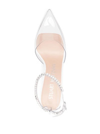 Stuart Glam 115mm pumps white calf leather/crystal translucent design crystal embellishment side button fastening pointed toe high heel branded insole Imported Composition PVC 100% SIZE & FIT Measurement CIRCUMFERENCE 8.66 in(22 cm) HEEL 4.33 in(11 cm) HEIGHT 2.36 in(6 cm)