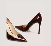 EDITOR'S NOTES An icon, innovated: The STUART POWER 100 reimagines our signature pointed-toe STUART pump with new design features. The result is more style and comfort than ever before. Details include: a modern, sleek silhouette, a reworked construction for improved support and a new foam insole for extra flexibility and comfort. Crafted by SW artisans in Spain, it is finished with a 100-mm stiletto heel that's strategically placed at a slight angle for even more stability. PRODUCT DETAILS MEASUREMENTS Heel Height: 3.9", 100 mm All measurements are made on a size 6 shoe. There may be slight measurement variations based on size. FEATURES Pump Stiletto heel Pointed toe Modernized construction for extra support New foam insole Crafted by SW artisans in Spain A Stuart Weitzman icon Part of the STUART Collection MATERIALS Gloss Tortoise Leather insole Rubber outsole MADE IN Spain