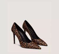 EDITOR'S NOTES An icon, innovated: The STUART POWER 100 reimagines our signature pointed-toe STUART pump for more style and comfort than ever before. Details include: a modern, sleek silhouette, a reworked construction for improved support and a new foam insole for extra flexibility and comfort. Crafted by SW artisans in Spain, it is finished with a 100-mm stiletto heel that's strategically placed at a slight angle for even more stability. PRODUCT DETAILS MEASUREMENTS Heel Height: 3.9", 100 mm All measurements are made on a size 6 shoe. There may be slight measurement variations based on size. FEATURES Pump Stiletto heel Pointed toe Modernized construction for extra support New foam insole Crafted by SW artisans in Spain A Stuart Weitzman icon Part of the iconic STUART Collection MATERIALS Leopard Nylon Leather insole Rubber outsole MADE IN Spain