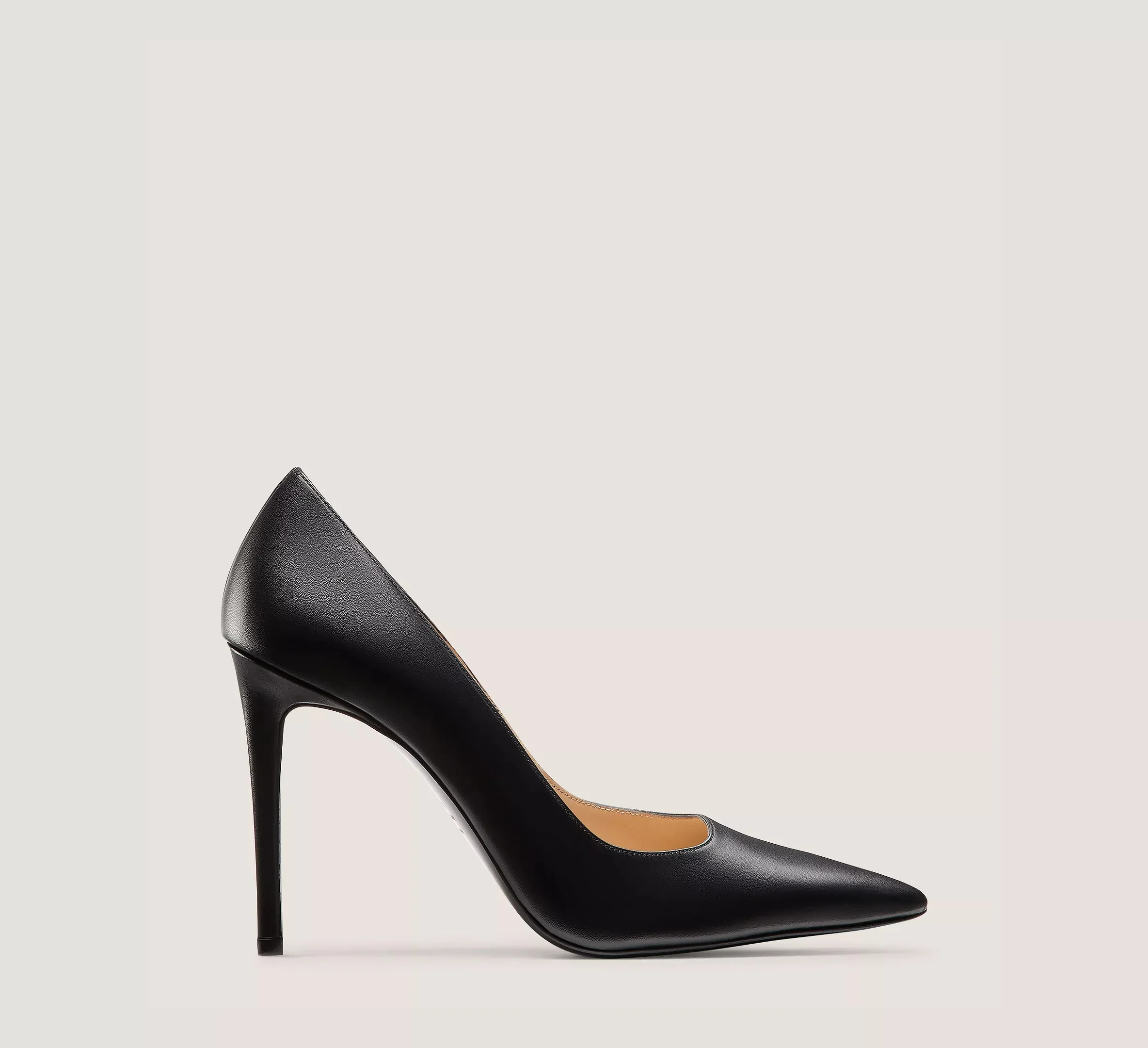 EDITOR'S NOTES An icon, innovated: The STUART POWER 100 reimagines our signature pointed-toe STUART pump with new design features. The result is more style and comfort than ever before. Details include: a modern, sleek silhouette, a reworked construction for improved support and a new foam insole for extra flexibility and comfort. Crafted by SW artisans in Spain, it is finished with a 100-mm stiletto heel that's strategically placed at a slight angle for even more stability. PRODUCT DETAILS MEASUREMENTS Heel Height: 3.9", 100 mm All measurements are made on a size 6 shoe. There may be slight measurement variations based on size. FEATURES Pump Stiletto heel Pointed toe Modernized construction for extra support New foam insole Crafted by SW artisans in Spain A Stuart Weitzman icon Part of the STUART Collection MATERIALS Smooth Leather Leather insole Rubber outsole MADE IN Spain