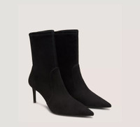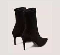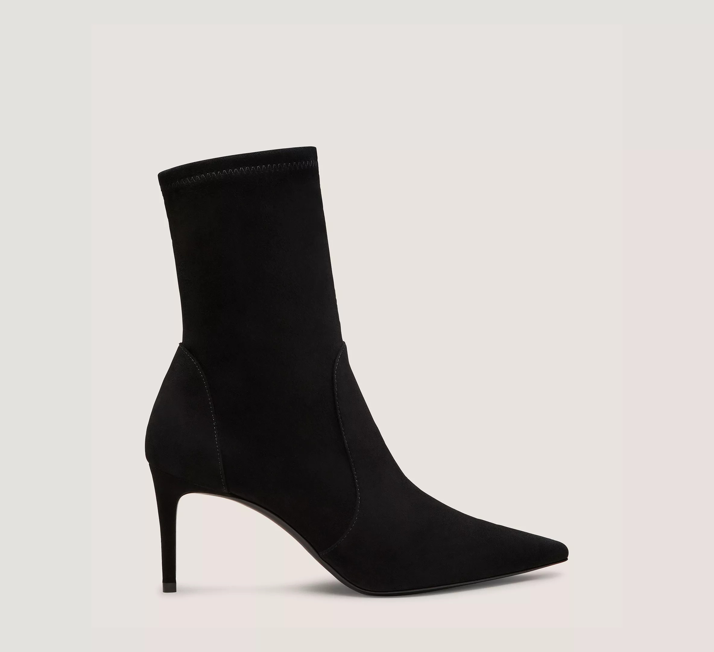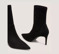 EDITOR'S NOTES The STUART POWER BOOTIE 75 delivers an even-sleeker, extra comfortable update on our iconic pointed-toe STUART sock bootie design. Crafted by SW artisans in Spain, it features a reimagined construction for improved stability, a 75-mm stiletto heel that's placed on a subtle angle for increased support and a new shock-absorbing insole for even more wearability. PRODUCT DETAILS MEASUREMENTS Heel Height: 3", 75 mm Shaft Height: 7.1", 18 cm Shaft Circumference: 9.8", 25 cm All measurements are made on a size 6 shoe. There may be slight measurement variations based on size. FEATURES Bootie Ankle Stiletto heel Pointed toe Pull-on Sock bootie Industry-leading stretch construction Modernized construction for extra support New foam insole Crafted by SW artisans in Spain A Stuart Weitzman icon Part of the STUART Collection MATERIALS Stretch suede Leather insole Leather outsole MADE IN Spain