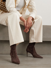 Stuart Weitzman’s ‘Stuart Power’ ankle boots will look great with everything from midi dresses to jeans and tailoring. They’re made from panels of soft suede for a sock-like fit and have sharp pointed toes and 75mm stiletto heels. Size & Fit Fits true to size, please refer to Stuart Weitzman size guide below: - US 4 = UK 1.5/ EU 34.5 - US 4.5 = UK 2/ EU 35 - US 5 = UK 2.5/ EU 35.5 - US 5.5 = UK 3/ EU 36 - US 6 = UK 3.5/ EU 36.5 - US 6.5 = UK 4/ EU 37 - US 7 = UK 4.5/ EU 37.5 - US 7.5 = UK 5/ EU 38 - US 8 = UK 5.5/ EU 38.5 - US 8.5 = UK 6/ EU 39 - US 9 = UK 6.5/ EU 39.5 - US 9.5 = UK 7/ EU 40 - US 10 = UK 7.5/ EU 40.5 - US 10.5 = UK 8/ EU 41 - US 11 = UK 8.5/ EU 41.5 - US 11.5 = UK 9/ EU 42 - US 12 = UK 9.5/ EU 42.5 Details & Care - Heel measures approximately 75mm/ 3 inches - Brown suede (Goat) - Pull on - Designer color: Walnut