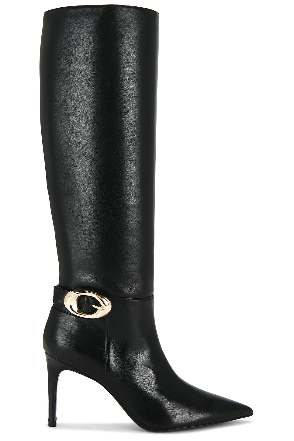 - Leather upper with leather sole - Made in Spain - Side zip + decorative buckle closure - Leather footbed and goat leather lining - Knee-high silhouette with bold buckle hardware - Glossy finish - Approx 85 mm / 3.34 inch heel Approx 380 mm / 15.0 inch shaft Shaft measures approx 15.0 in circumference - Revolve Style No. STUA-WZ643 - Manufacturer Style No. SM378