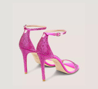 EDITOR'S NOTES The limited-edition STUART POWER SHINE pump, created in collaboration with Swarovski, delivers a high-shine, high-glam take on our new icon, the STUART POWER 75 pump. Meticulously crafted by our expert artisans in Spain, each pair is adorned with over 6,000 tonal Swarovski pave crystals. This silhouette features a modernized construction for maximum style and comfort, including a reworked 75-mm stiletto heel set on a subtle angle for extra support. Make every step striking in this dazzling pump. PRODUCT DETAILS MEASUREMENTS Heel Height: 3", 75 mm All measurements are made on a size 6 shoe. There may be slight measurement variations based on size. FEATURES Stiletto heel Pointed toe 75 mm Limited edition Over 6,000 Swarovski pave crystals per pair Ice blue version features Swarovski ReCreated™ Crystals — Swarovski's most sustainable crystals to date Part of the Swarovski x Stuart Weitzman Capsule Collection More colors and sizes available at swarovski.com MATERIALS Pave Crystal & Suede