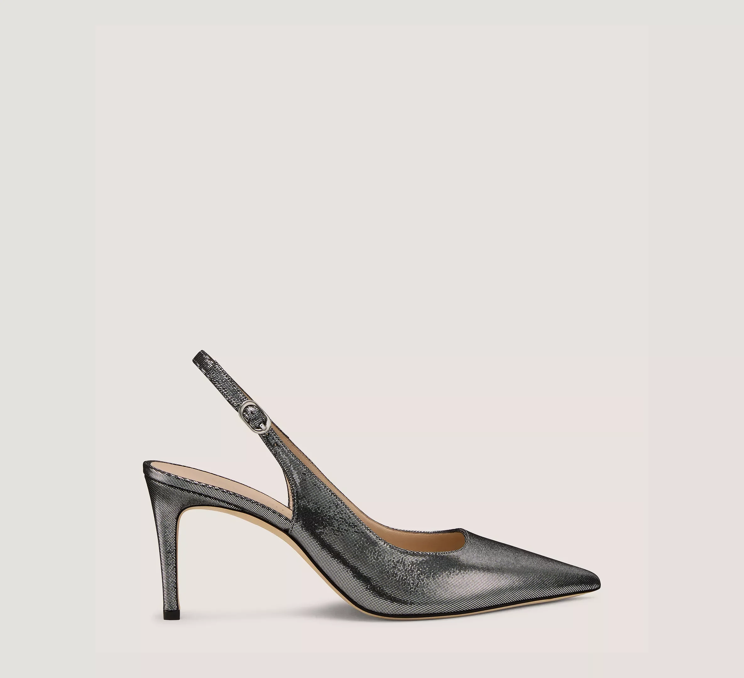 EDITOR'S NOTES The STUART POWER SLINGBACK 75 reimagines our signature pointed-toe pump design for improved support. It features a modernized construction complete with a strategically placed 75-mm stiletto heel for extra stability and a reworked sole for added flexibility. PRODUCT DETAILS MEASUREMENTS Heel Height: 3", 75 mm All measurements are made on a size 6 shoe. There may be slight measurement variations based on size. FEATURES Pump Stiletto heel Pointed toe Modernized construction for extra support New foam insole Adjustable slingback strap Crafted by SW artisans in Spain A Stuart Weitzman icon Part of the iconic STUART Collection MATERIALS Leather Noir Leather insole Rubber outsole MADE IN Spain