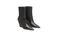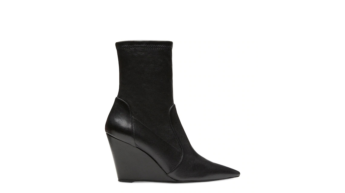 Editor's Notes The STUART WEDGE 85 SOCK BOOTIE melds the classic sock bootie silhouette with a timeless wedge heel to create an even-more wearable take on one of our most popular looks. You'll add instant polish to any outfit with this streamlined style. Product Details MEASUREMENTS Heel Height: 3.4", 85 mm Shaft Height: 7.1", 18 cm Shaft Circumference: 9.7", 25 cm All measurements are made on a size 6 shoe. There may be slight measurement variations based on size. FEATURES Bootie Ankle Wedge heel Pointed toe Pull-on Sock bootie Stretch construction Part of the STUART Collection MATERIALS Stretch nappa leather Leather insole Leather outsole MADE IN SPAIN