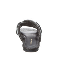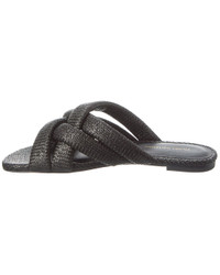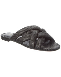 - About the brand: Championing artistry and function in women's footwear. - Crossover Raffia Slide in black herringbone raffia with strappy design - Lightly padded leather insole - Smooth leather sole - Imported