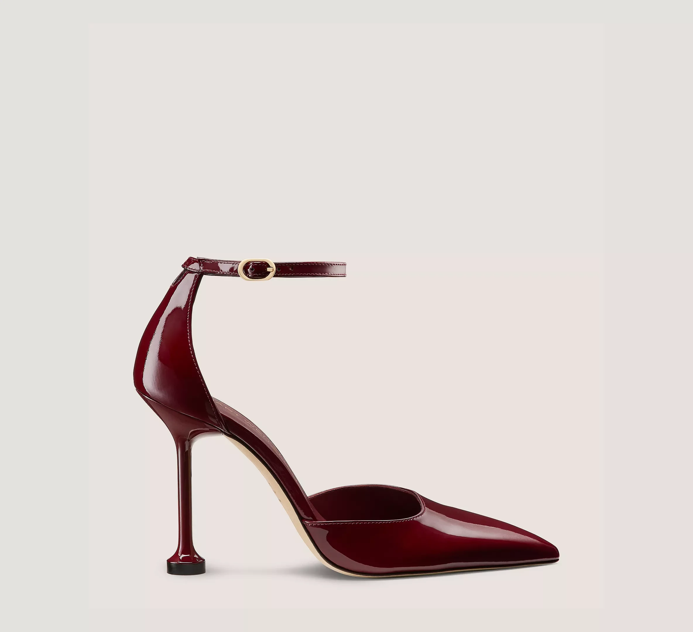 EDITOR'S NOTES The STUARTINI PUMP 100 reimagines our iconic pointed-toe pump design with a fresh, playful twist. Defined by a meticulously sculpted martini heel, which offers a 100-mm lift, it is crafted in Spain with a sleek pointed toe and finished with our signature keyhole detail on the back counter. PRODUCT DETAILS MEASUREMENTS Heel Height: 3.9", 100 mm All measurements are made on a size 6 shoe. There may be slight measurement variations based on size. FEATURES Pump Sculptural Heel Keyhole detail Adjustable ankle strap detail MATERIALS Patent leather Leather insole Leather outsole MADE IN Spain