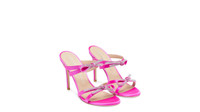 Editor's Notes <br /> The SW BOW 100 SLIDE is adorned with an SW BOW detail — our modern take on the classic bow featuring Swarovski crystals. It is constructed with elegant straps complete with cutout accents and elevated by a sleek 100-mm stiletto heel. Reach for this glamorous sandal for a look that truly shines.<br /> Product Details MEASUREMENTS Heel Height: 3.9", 100 mm All measurements are made on a size 6 shoe. There may be slight measurement variations based on size. FEATURES Sandal Stiletto heel Round toe SW BOW detail with Swarovski crystal embellishments Cutout details MATERIALS Satin Leather insole Leather outsole MADE IN SPAIN