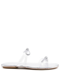 SW Bow slides Highlights - Sw bow slides from stuart weitzman featuring silver-tone, silver-tone hardware, bow detailing, open toe, slip-on style, branded leather insole, flat rubber sole and calf leather blend. Imported Composition PVC 100% SIZE & FIT Measurement HEEL 0.59 in(1.5 cm) Sole height 0.39 in(1 cm)