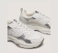 EDITOR'S NOTES The SW TRAINER embodies a remarkable fusion of fashion and function. Crafted by our artisans in Italy from cutting-edge materials for exceptional breathability and cushioned comfort, it features various contrasting panels that create a striking, graphic effect. Of course, it stays true to our style-meets-comfort approach to design with its lightweight construction and breathable mesh lining, all set on a sculpted outsole complete with special bending cuts for extra flexibility. PRODUCT DETAILS MEASUREMENTS Heel Height: 2", 50 mm All measurements are made on a size 6 shoe. There may be slight measurement variations based on size. FEATURES Sneaker Flatform Almond toe Lace-up Breathable mesh lining Pull tab High-density sockliner Flexible, high-grip outsole SW logo accents Features a wider fit MATERIALS Calf Leather, Mesh & Metallic Leather Leather insole Rubber outsole MADE IN Italy
