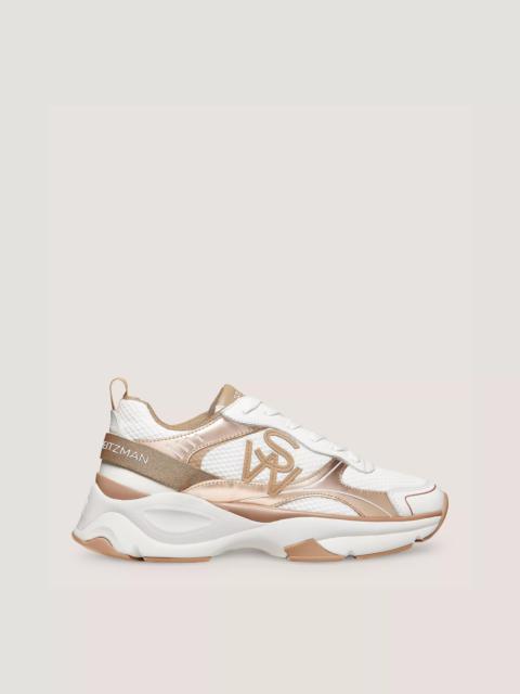 EDITOR'S NOTES The SW TRAINER embodies a remarkable fusion of fashion and function. Crafted by our artisans in Italy from cutting-edge materials for exceptional breathability and cushioned comfort, it features various contrasting panels that create a striking, graphic effect. Of course, it stays true to our style-meets-comfort approach to design with its lightweight construction and breathable mesh lining, all set on a sculpted outsole complete with special bending cuts for extra flexibility. PRODUCT DETAILS MEASUREMENTS Heel Height: 2", 50 mm All measurements are made on a size 6 shoe. There may be slight measurement variations based on size. FEATURES Sneaker Flatform Almond toe Lace-up Breathable mesh lining Pull tab on front High-density sockliner Flexible, high-grip outsole SW logo accents MATERIALS Calf leather & mesh Leather insole Rubber outsole MADE IN ITALY