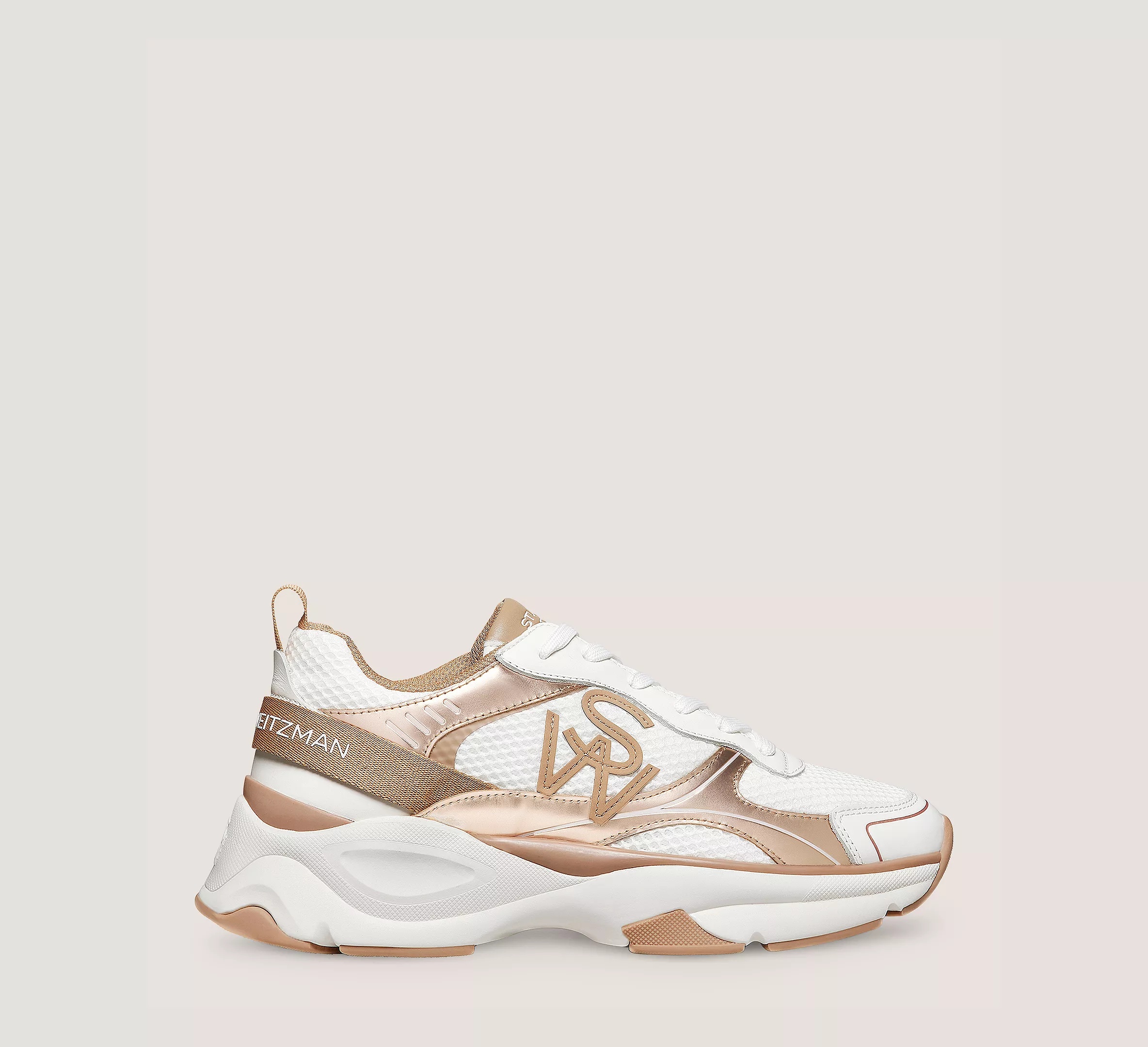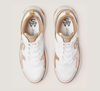 EDITOR'S NOTES The SW TRAINER embodies a remarkable fusion of fashion and function. Crafted by our artisans in Italy from cutting-edge materials for exceptional breathability and cushioned comfort, it features various contrasting panels that create a striking, graphic effect. Of course, it stays true to our style-meets-comfort approach to design with its lightweight construction and breathable mesh lining, all set on a sculpted outsole complete with special bending cuts for extra flexibility. PRODUCT DETAILS MEASUREMENTS Heel Height: 2", 50 mm If you are in between sizes, choose the next size up All measurements are made on a size 6 shoe. There may be slight measurement variations based on size. FEATURES Sneaker Flatform Almond toe Lace-up Breathable mesh lining Pull tab on front High-density sockliner Flexible, high-grip outsole SW logo accents Features a wider fit MATERIALS Calf leather & mesh Leather insole Rubber outsole MADE IN ITALY