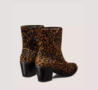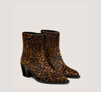 EDITOR'S NOTES The TATE BOOTIE delivers our signature minimalist, sophisticated take on the enduring Western trend. Crafted by SW artisans in Spain, this pointed-toe bootie is finished with a block heel for a slight lift without sacrificing comfort. PRODUCT DETAILS MEASUREMENTS Heel Height: 2.5", 64 mm Shaft Height: 5.1", 13 cm Shaft Circumference: 17.7", 45 cm All measurements are made on a size 6 shoe. There may be slight measurement variations based on size. FEATURES Bootie Ankle Block heel Pointed toe Pull-on Western-inspired MATERIALS LEOPARD PRINTED SPORT SUEDE/STACKED Leather insole Leather outsole MADE IN Spain