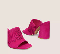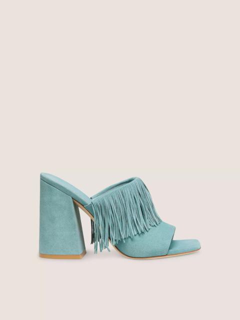 EDITOR'S NOTES The TIA FRINGE 100 SLIDE gives our best-selling square-toe TIA sandal design a striking textured twist. Note the fashion-forward fringe detail on its upper. Crafted by SW artisans in Spain, this look is set on a 100-mm flared block heel specially constructed with a wider base that renders it even more comfortable than you think. PRODUCT DETAILS MEASUREMENTS Heel Height: 3.9", 100 mm All measurements are made on a size 6 shoe. There may be slight measurement variations based on size. FEATURES Slide Block heel Square-toe Fringe detail MATERIALS Suede Leather insole Leather outsole MADE IN SPAIN