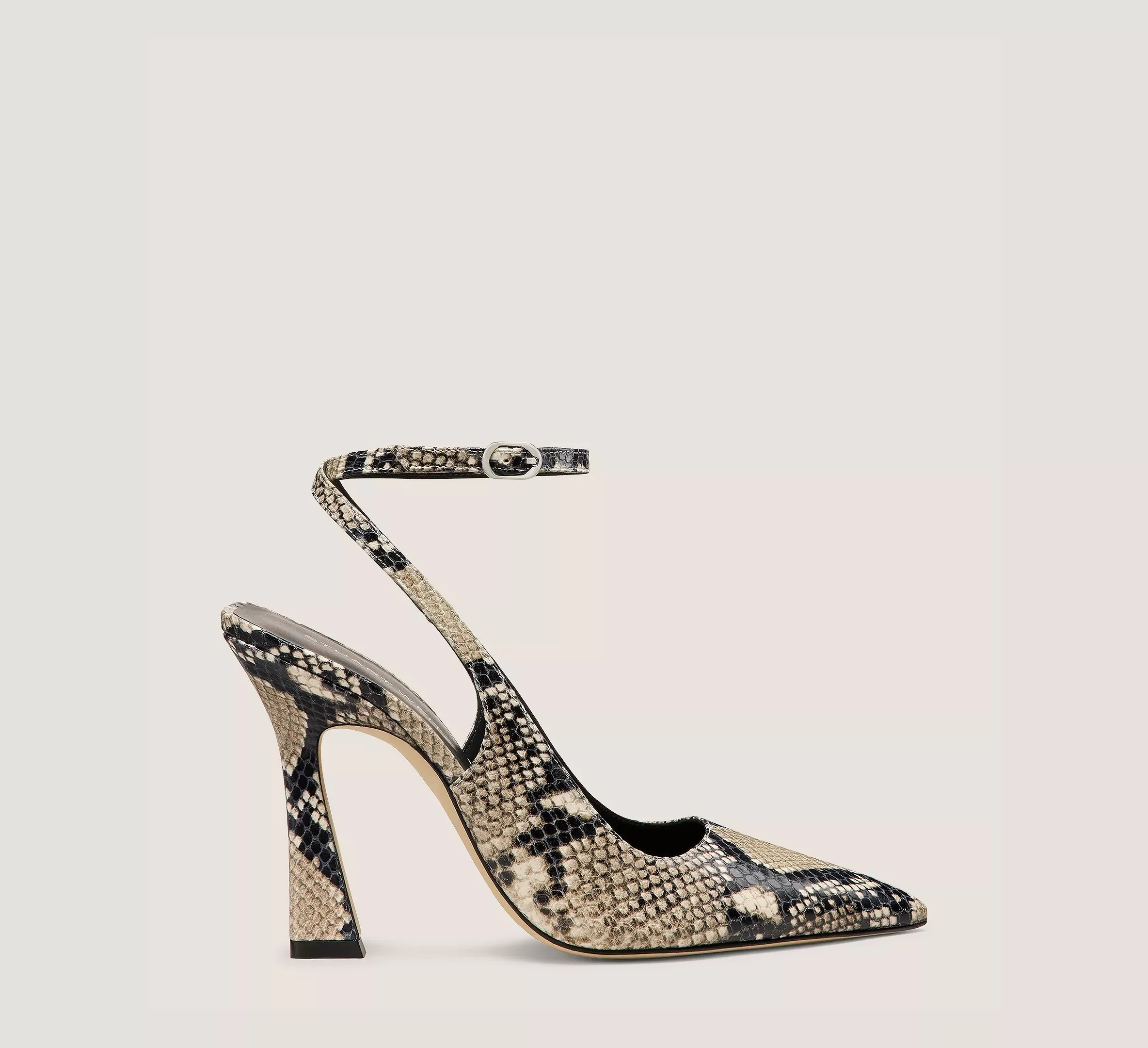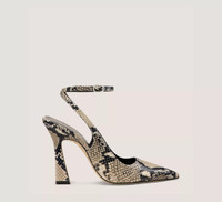 EDITOR'S NOTES The VINNIE 100 STRAP PUMP's modern, architectural sensibility is apparent from its pointed toe to its squared-off back counter. Melding style and comfort, it features a sculptural 100-mm heel that is placed at a slight angle to offer extra support and an adjustable a wraparound ankle strap. PRODUCT DETAILS MEASUREMENTS Heel Height: 3.9", 100 mm All measurements are made on a size 6 shoe. There may be slight measurement variations based on size. FEATURES Pump Sculptural heel Pointed toe Wraparound adjustable ankle strap MATERIALS Snake Printed Leather Leather insole Leather outsole MADE IN Spain