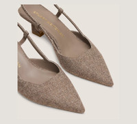 EDITOR'S NOTES The VINNIE 50 SLINGBACK effortlessly melds style and comfort, featuring a sculptural angled 50-mm heel that is strategically placed for extra support. Sleek, architectural lines, from its pointed toe to its squared-off back counter, further elevate the look. PRODUCT DETAILS MEASUREMENTS Heel Height: 2", 50 mm All measurements are made on a size 6 shoe. There may be slight measurement variations based on size. FEATURES Pump Sculptural heel Pointed toe Adjustable slingback strap MATERIALS Fall Twill Leather insole Leather outsole MADE IN Spain