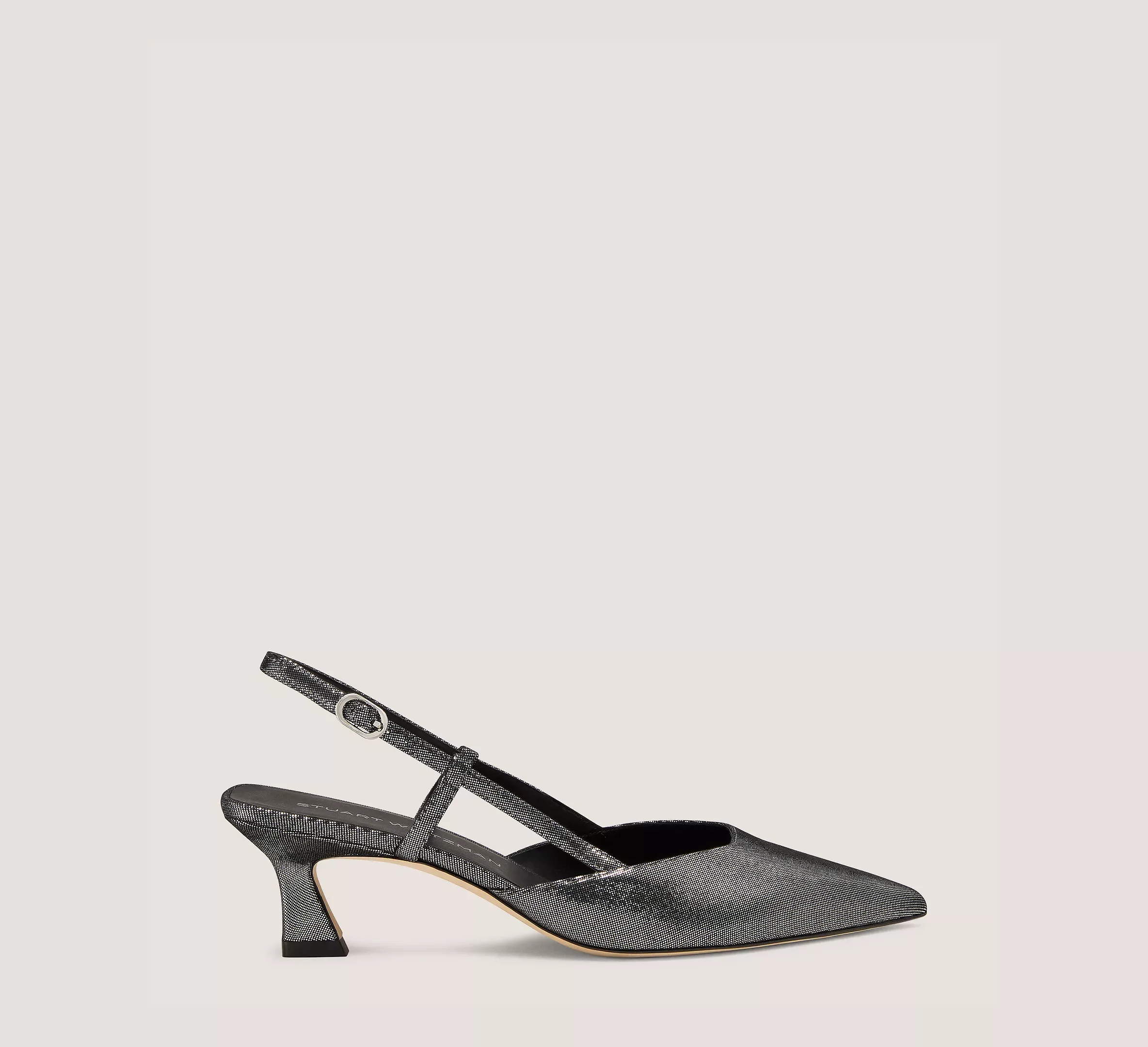 EDITOR'S NOTES The VINNIE 50 SLINGBACK effortlessly melds style and comfort, featuring a sculptural angled 50-mm heel that is strategically placed for extra support. Sleek, architectural lines, from its pointed toe to its squared-off back counter, further elevate the look. PRODUCT DETAILS MEASUREMENTS Heel Height: 2", 50 mm All measurements are made on a size 6 shoe. There may be slight measurement variations based on size. FEATURES Pump Sculptural heel Pointed toe Adjustable slingback strap MATERIALS Leather Noir Leather insole Leather outsole MADE IN Spain