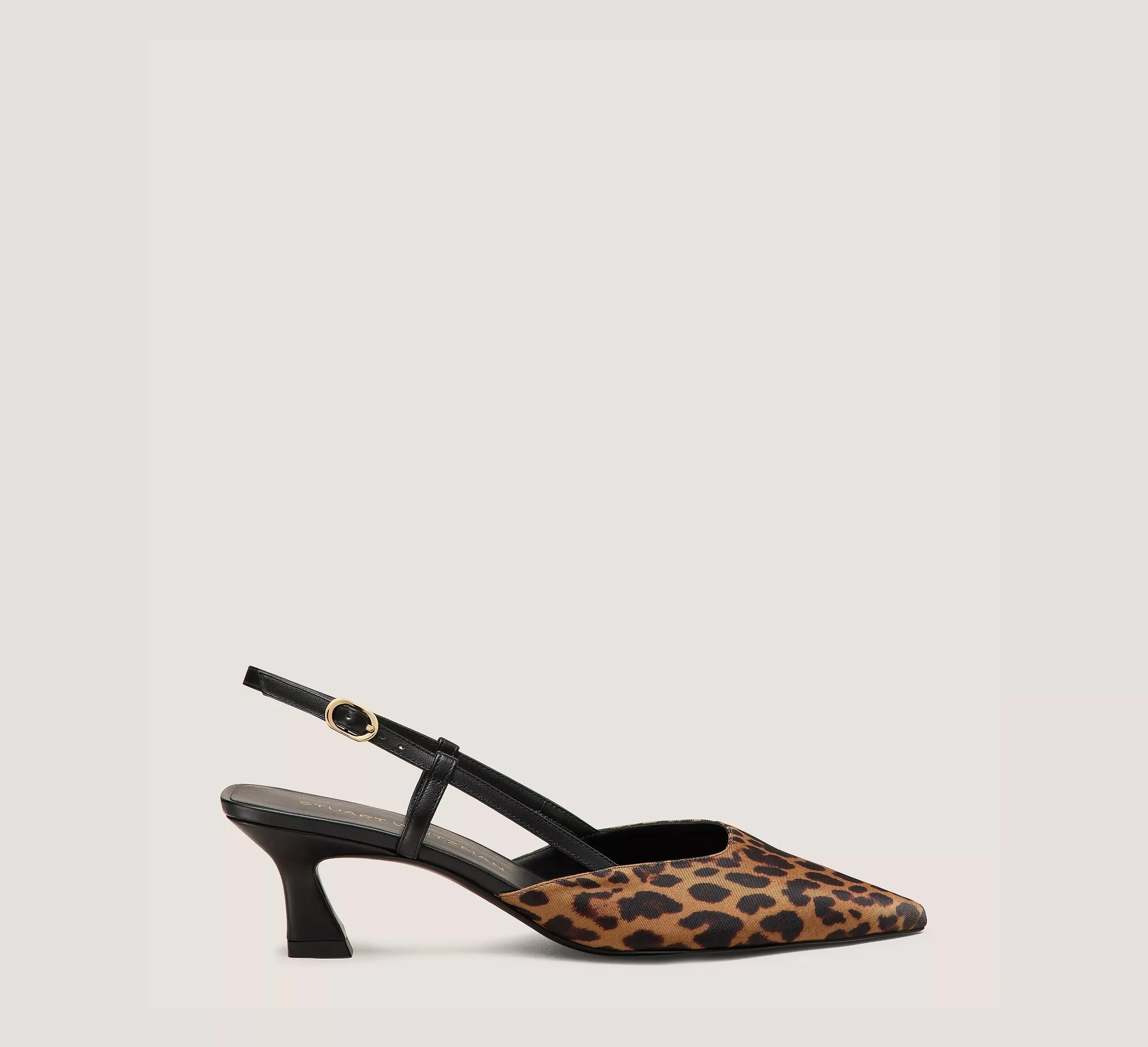 EDITOR'S NOTES The VINNIE 50 SLINGBACK showcases our signature artisanal Spanish craftmanship with its precise and artful design. Constructed for style and comfort, it features a sculptural 50-mm heel that is strategically placed for extra support. Meanwhile, a sleek pointed toe and an angled vamp infuse unparalleled sophistication into the look. PRODUCT DETAILS MEASUREMENTS Heel Height: 2", 50 mm All measurements are made on a size 6 shoe. There may be slight measurement variations based on size. FEATURES Pump Sculptural heel Pointed toe Cutout side details Adjustable slingback strap MATERIALS Leopard Nylon Leather insole Leather outsole MADE IN Spain