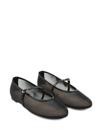 leather ballerina shoes Highlights - Black - Buckle-fastening ankle strap - Round toe - Branded insole Imported Composition Lining: Leather 100% Outer: Mesh 100% Sole: Leather 100%