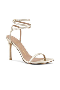 - Metallic leather upper, lining, and sole - Made in Spain - Wrap ankle with buckle closure - Rounded open toe styling - Approx 100mm/ 4 inch heel - Revolve Style No. STUA-WZ533 - Manufacturer Style No. SD600