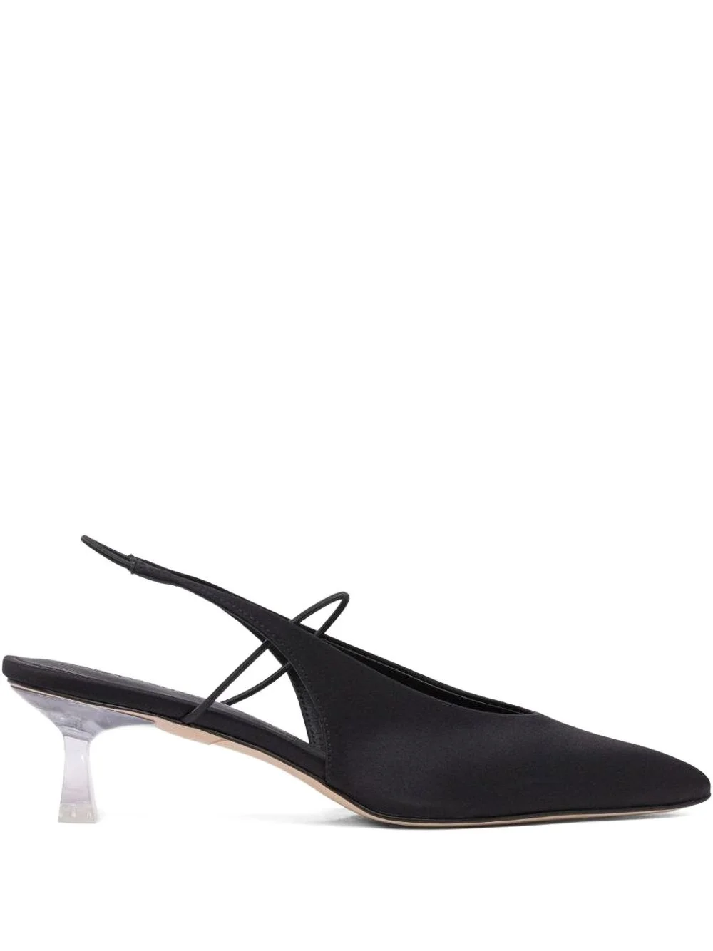 50mm Mignon slingback pumps Highlights - Black - Satin finish - Slingback strap - Transparent heel - Pointed toe Imported Composition Outer: Silk 100% Sole: Calf Leather 100% Lining: Calf Leather 100% SIZE & FIT Measurement HEEL 1.96 in(5 cm)