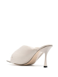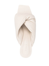 Croissant 100mm mules beige calf leather twist detailing open toe padded panels slip-on style high cone heel Imported Composition Outer: Calf Leather 100% Sole: Calf Leather 100% Lining: Calf Leather 100% SIZE & FIT Measurement HEEL 3.93 in(10 cm) Sole height 0.39 in(1 cm)