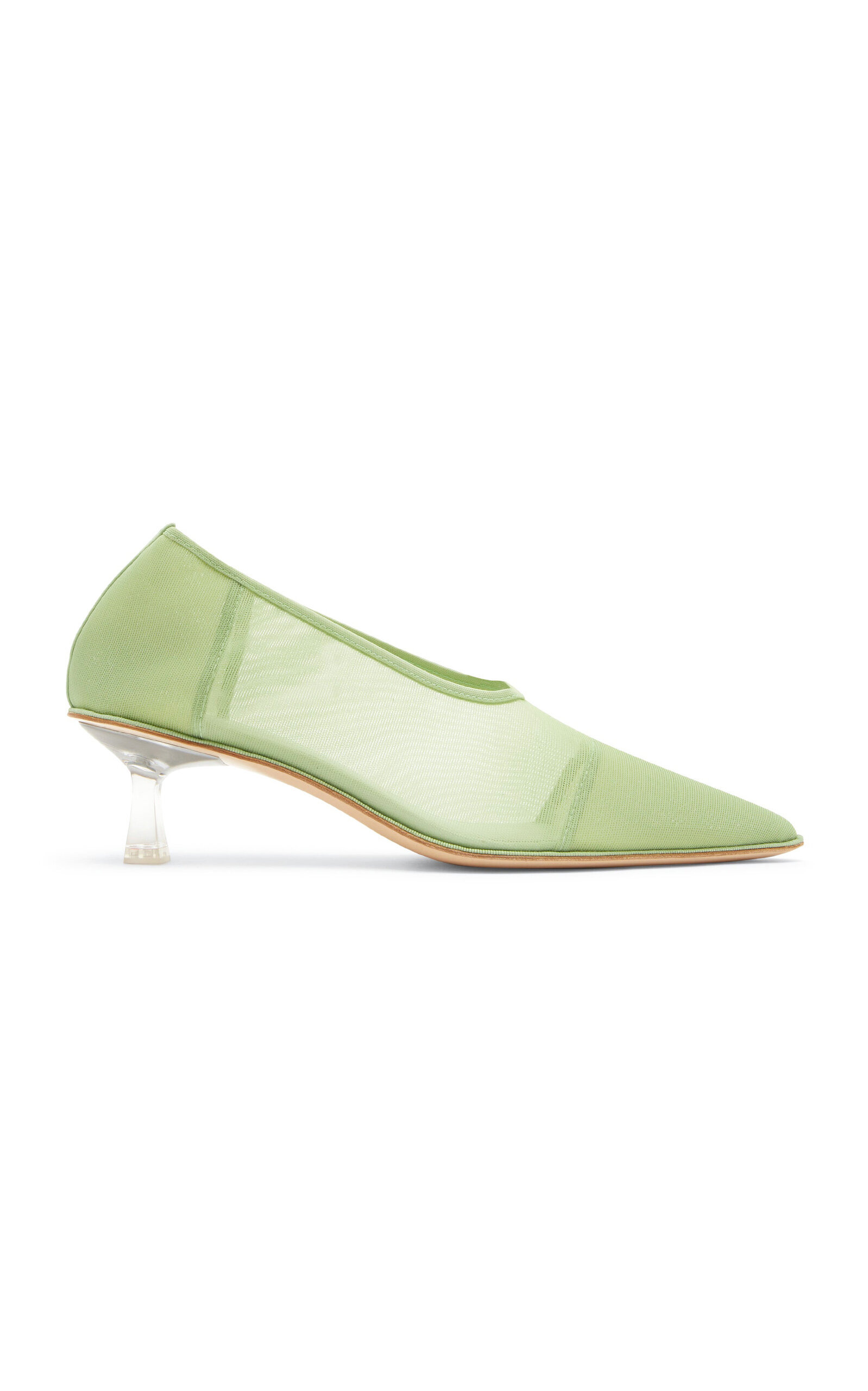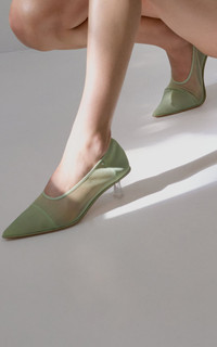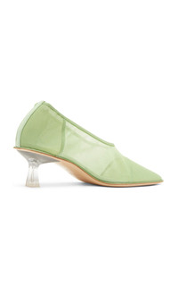 Studio Amelia was born in 2019 from the desire to craft the perfect sandal. A testament to luxury and simplicity, Studio Amelia is the every woman brand creating Footwear and Accessories that don't compliment an outfit, but rather, define it. Designed with chic simplicity in mind and inspired by layered lingerie for the 1990's, the Iris 50 Heel is a classic pointed toe, with a 50mm pump crafted from a combination of Stretch and Non-Stretch Nylon, offering both flexibility and structure. The upper is crafted from Stretch Nylon with an elasticated grosgrain opening, ensuring a comfortable but snug fit, utilizing non-stretch nylon to create stability over the toes and counter to retain the clean silhouette. The Iris 50 Heel is finished on classic leather soles and a custom made cubic lucite heel, creating contrasting layers of opacity. PRODUCT DETAILS - Heel measures approximately 50mm / 2" - Slip on - Composition: 100% nylon - Imported