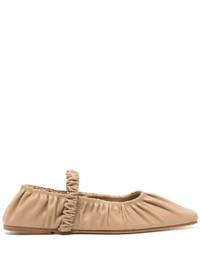 Zadie leather ballerina shoes Highlights - Beige - Calf leather - Gathered detailing - Elasticated strap - Square toe - Flat leather sole Imported Composition Outer: Nappa Leather 100% Lining: Calf Leather 100% Sole: Calf Leather 100% SIZE & FIT Measurement HEEL 0.19 in(0.5 cm) HEIGHT 2.36 in(6 cm) Washing instructions Read Manufacturer Guidelines
