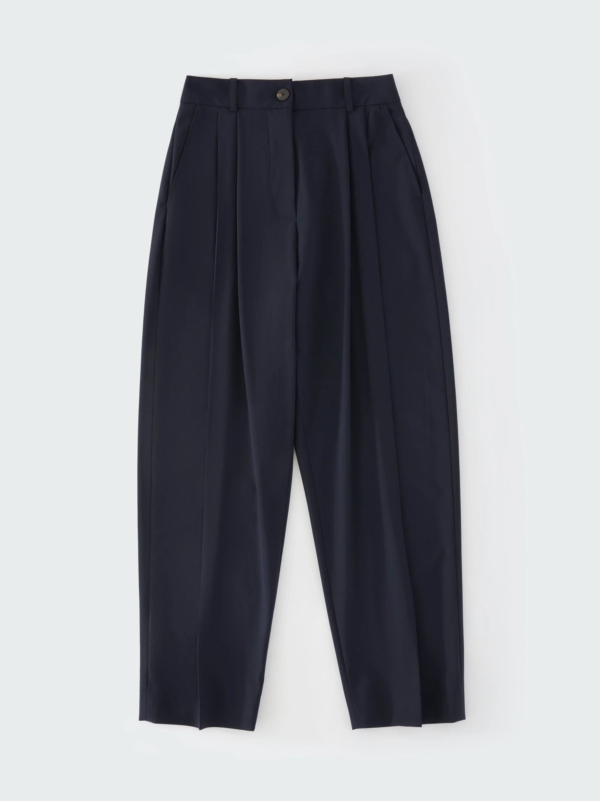 Cut from our signature Tropical Wool fabric, the classic Acuna pants are a Studio Nicholson staple for good reason. They combine a high rise with a wide, flowing leg, which is slightly elongated to allow the fabric to fold and pool. DETAILS - Double pleated front - Side pockets - Generous cut - Cut from our signature Tropical Wool - Wear it with the matching Velho TopChen is 5'10"/ 178 cms and wears a UK8 CARE 58% Virgin Wool 38% Cordura 4% Elastane Dry Clean | Delicate Wash Made in Portugal