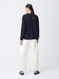 Five-pocket jeans with added volume, Akerman creates a distinctive silhouette with its curved leg and cropped length. They are made from recycled denim that’s been garment dyed for a soft, easy-wearing finish. - Button fastening - Zip fly - Oversized cut with curved leg - Garment-dyed recycled denimLaura is 5’10” / 178cm, she wears a size 0 DETAILS & CARE 71% COTTON 16% REUSED COTTON 13% RECYCLE POLYESTER, Delicate Wash at 30°C / Dry Clean
