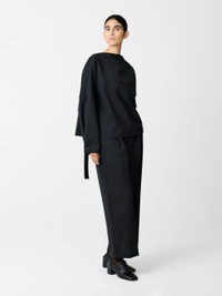 The minimalist details on the Ansell pants reflect the succinct mood of our Winter ‘24 collection. They’re crafted from a spongy poly-viscose blend and are cut to sit high on the waist with deep pleats, resulting in a roomier feel in the leg than flat-front styles. DETAILS - Deep pleated front - Concealed hook-and-eye zip fastening - Cropped ankle - Spongy poly-viscose blend Rebecca is 5’10” / 177.5cm, she wears a size UK8 CARE 64% Polyester 34% Viscose 2% Elastane Dry Clean | Cool Iron Made in Portugal