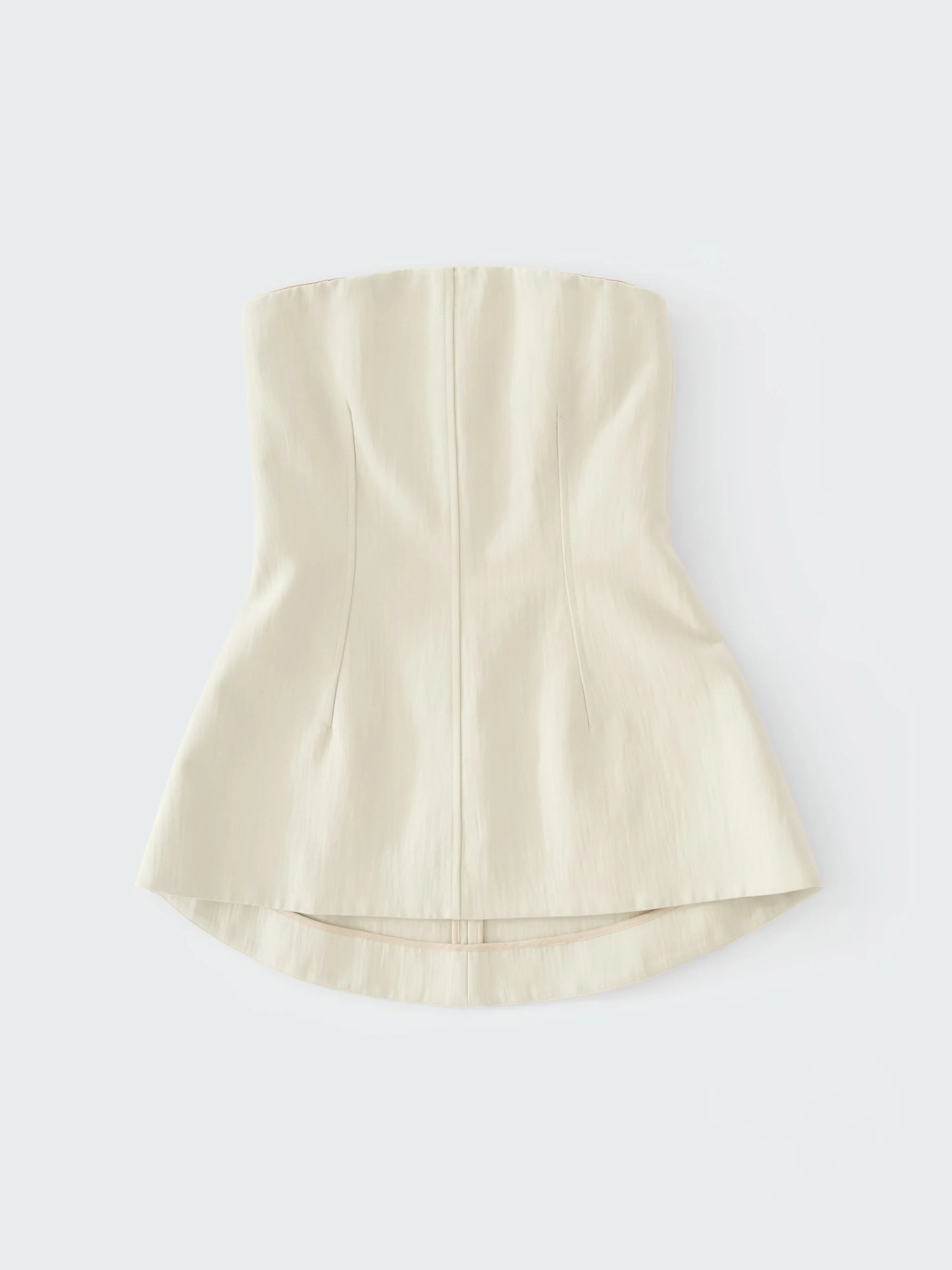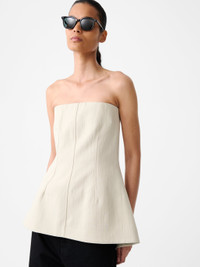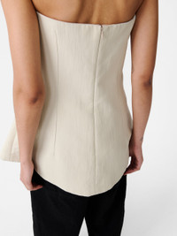 Studio Nicholson leans into traditional corsetry to create the Arles strapless top. Cut from our tumbled double cotton fabric to give a rounded hand feel, it has an internal corset with boning that accentuates the fabric choice and amplifies the sculptural silhouette. DETAILS - Internal corset with boning - Sculptural silhouette - Rear invisible back zip fasteningNataly is 5'10" / 177 cms and wears a size UK8 CARE 95% Cotton 5% Polyamide Do NOT Wash | Dry Clean Only Made in Portugal